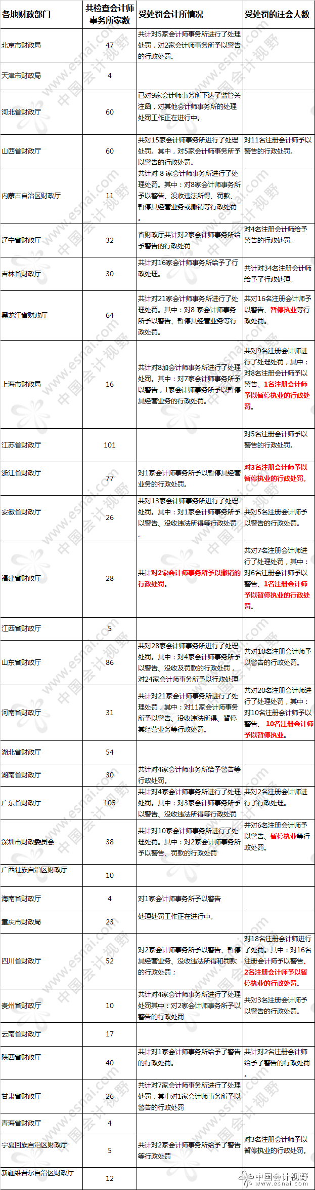 日前,财政部发布了《会计信息质量检查公告》第三十五号、第三十六号、第三十七号。其中,第三十五号和第三十七号公告分别对财政部组织专员办检查的企业、金融机构和证券资格会计师事务所的检查处理结果进行了逐户公告,第三十六号公告对各地方财政部门检查企事业单位、非证券资格会计师事务所的检查处理情况进行了逐省公告。