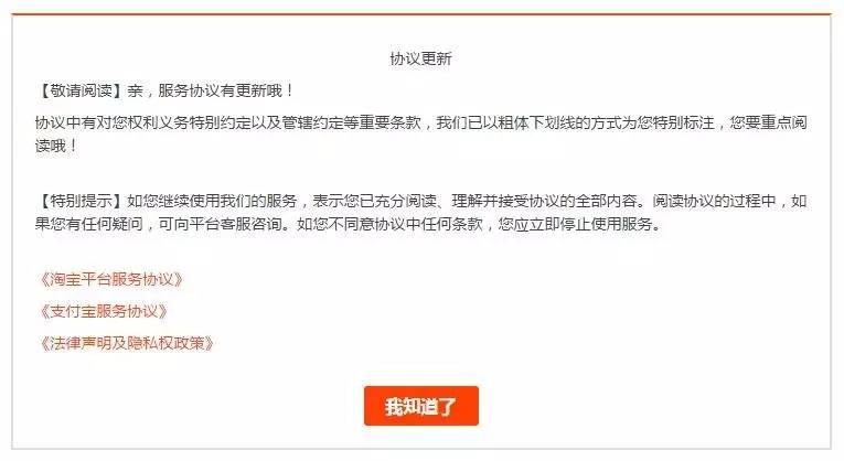 日前阿里巴巴对旗下淘宝、支付宝平台的服务协议进行了修改,对于用户的权利和义务进行了更细致的界定,同时规定在淘宝、支付宝平台的非活跃用户在一定时间之后将会进行销号处理。