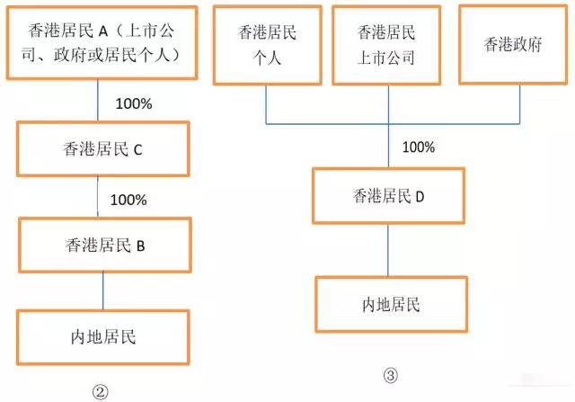 这种结构下,香港居民B上面的100%控制人不是9号公告中所指的香港居民的三类终极实体,因此,香港居民B不能直接认定“受益所有人”。但是,这里我同样想要表达的一点意思是,不能“直接认定”,并非就不能认定,只是我们需要更多的条件进行判断。正如9号公告案例解读中所称的,如果香港居民B在香港有业务实质,承担融资功能(比如房地产企业现在国内贷款收紧,香港B公司承担境外向非关联方外债融资的功能),则仍然可以结合条件认定香港居民B是股息“受益所有人”。
