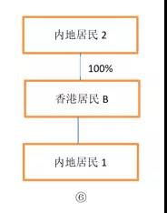 但是,还有一个是9号公告解读中没有画出的图形,就是右边⑤中,因为9号公告说,申请人被第(一)至(三)项中的一人或多人直接或间接持有100%股份,且间接持有股份情形下的中间层为中国居民,香港居民B也可以直接认定为“受益所有人”。为什么这种结构香港居民B可以直接认定股息“受益所有人”呢,估计是这种结构下,香港居民B的股息到内地居民A,再到最上层终极实体中,最终是符合受益所有人条件,且也无避税空间,且一定程度还存在重复征税问题,即这种构架实际受益人穿透到最上层为香港居民,且该构架并无避税意图,因此可以直接认定。