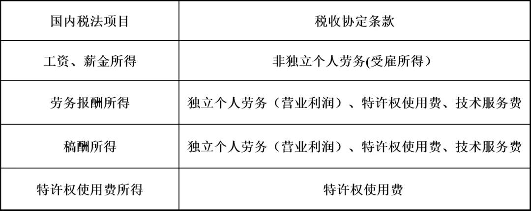 十、新个税法综合所得与税收协定条款的对应关系