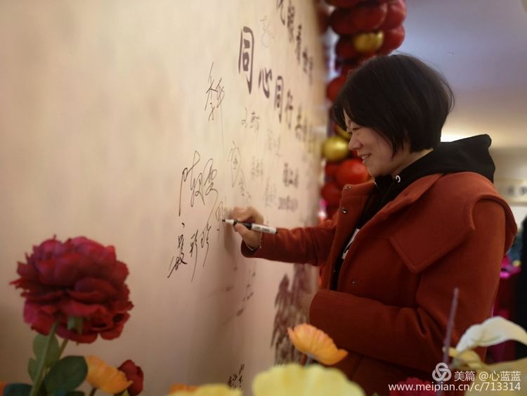 签名墙旁留个影,发现看自己越看越喜欢。