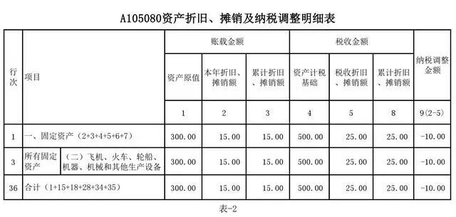 第二步:填写《A105080资产折旧、摊销及纳税调整明细表》,如表-2:
