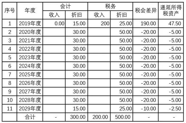 递延所得税资产在各年度之间的账务处理: