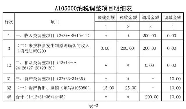 第三步:填写《A105000纳税调整项目明细表》,如表-3: