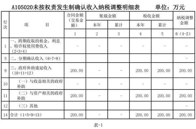 第一步:填写《A105020未按权责发生制确认收入纳税调整明细表》,如表-1: