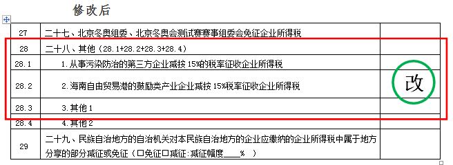 新增第28.2行,项目名称为“2.海南自由贸易港的鼓励类产业企业减按15%税率征收企业所得税”;