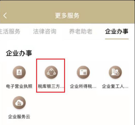 企业可以进入【随申办】APP,点击【更多服务】—【企业办事】—【税库银三方协议签订】完成三方协议签订。