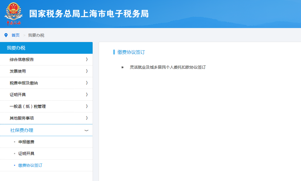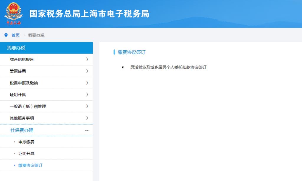 上海市电子税务局有专门的功能节点用于签订“灵活就业及城乡居民个人委托扣款协议”。