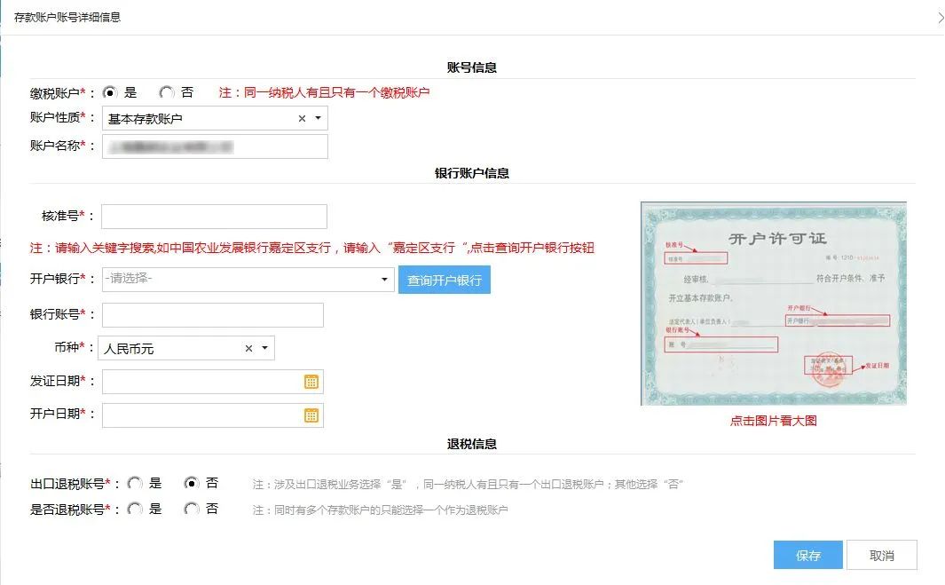 1. 若系统反馈“缴款账号”错误,可根据银行反馈的错误提示修改,点击“保存”按钮后由系统直接验证;验证通过后,请同步修改“存款账户账号报告”相关内容。如无法解决的,请联系开户银行核对账户相关信息。