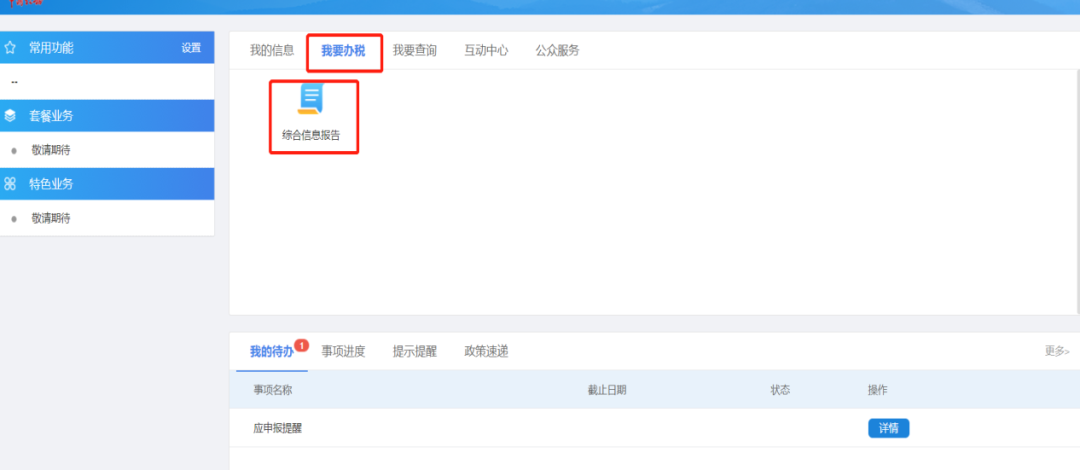 若需申报,则点击页面的“进入申报表”按钮进入到申报选择页面。