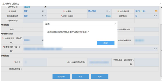 (1)点击新增土地,填写正确行政区划