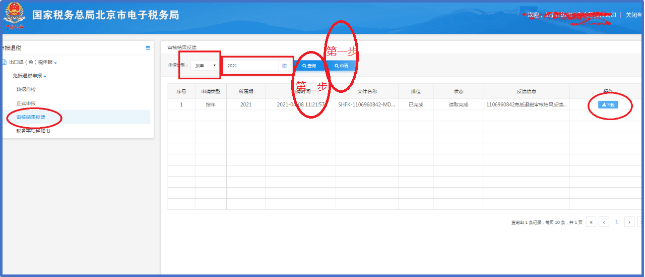 Step1:电子税务局反馈下载