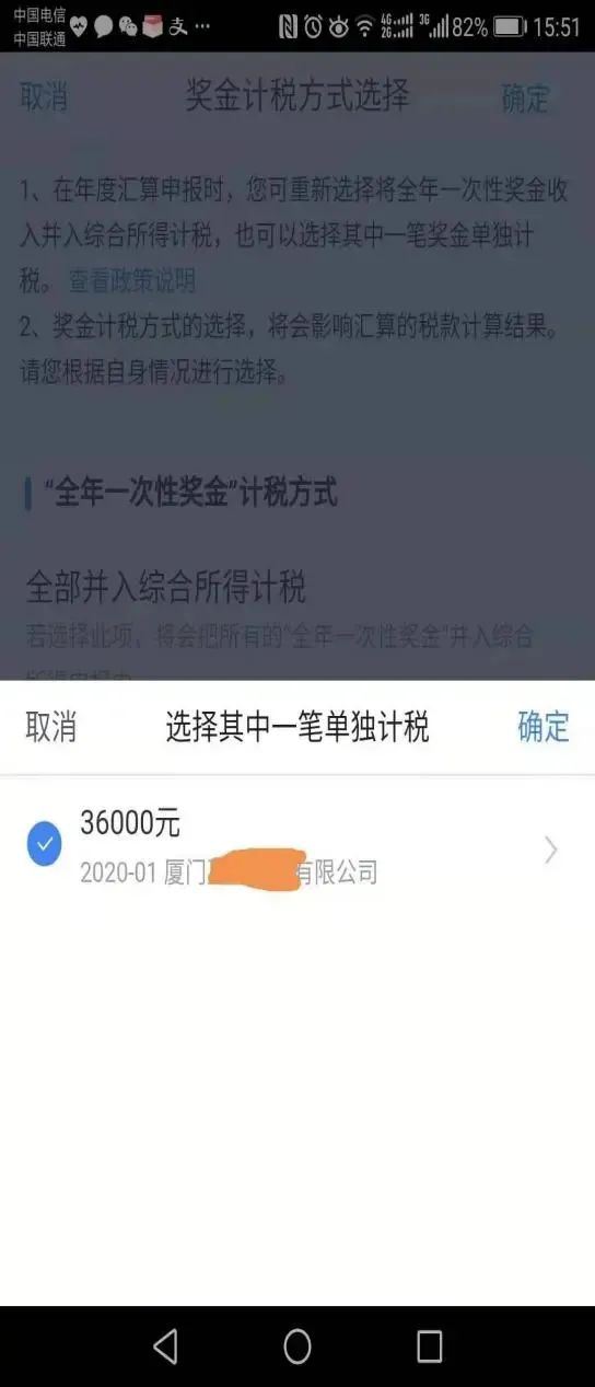 亲们,如果您2020年度有取得全年一次性奖金,赶快拿起手机登录个税APP,分别选择并入综合所得和单独计税两种方案,算一算有没有税款可退。