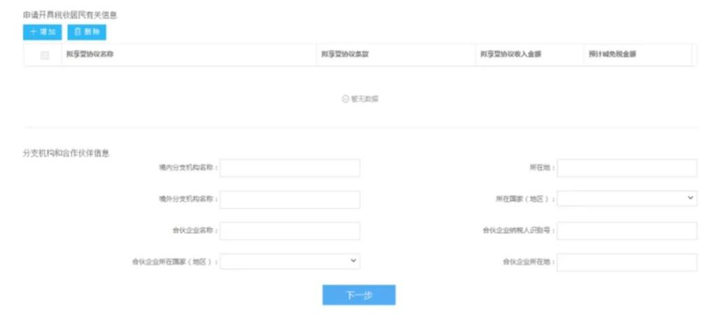 (4)选择申请年度、纳税年度、缔约对方国家(地区)、对方纳税人英文名称、缔约对方纳税人识别号;
