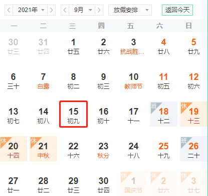 9月征收期内无连续三天以上假日,故而征收期结束日期为15日。