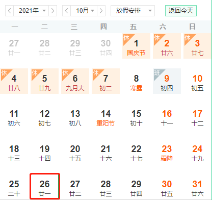 10月征收期内有连续3天以上的假期(国庆节),所以从15日开始,按工作日顺延7日,征收期结束日期变为10月26日。
