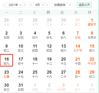 8月征收期内无连续三天以上假日,但是15日刚好是非工作日,所以征收期为休假日期满的次日16日。