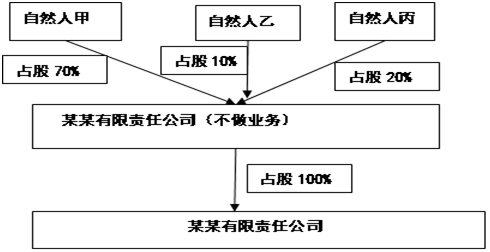 假设“某某有限责任公司”由三位自然人股东:甲占股70%,乙占股10%、丙占股20%。股权架构图如下图1所示: