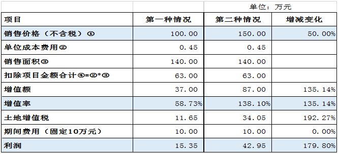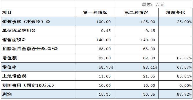 (二)售价变化引起土地增值税税率跳档情况