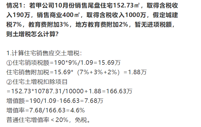 1、计算土地增值税计税方法一