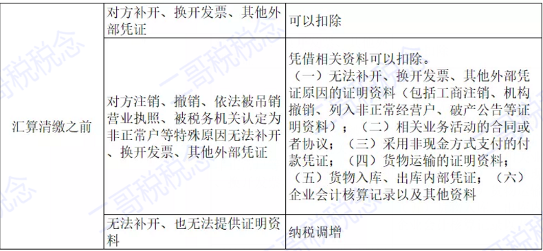 如果无法取得的原因是因为对方注销,破产、非正常了,你能提供合同、非现金支付证明、运输资料等相关证明信息,那也允许扣除。