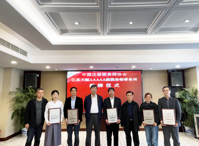 3月11日上午,江苏天赋税务师事务所有限公司(以下简称“天赋税务”)及其4家子公司5A级税务师事务所授牌仪式在南京举行,中国注册税务师协会副秘书长张晓平、会员部副主任杜大海专程来宁授牌,江苏省注册税务师协会副会长徐火财、行业党委副书记兼副秘书长朱建国、南京办事处副主任丁学梅等领导一同出席,天赋税务及各子公司负责人高允斌、严康、曹国华、姚晓敏、朱晨、高玉玉等参加授牌仪式。