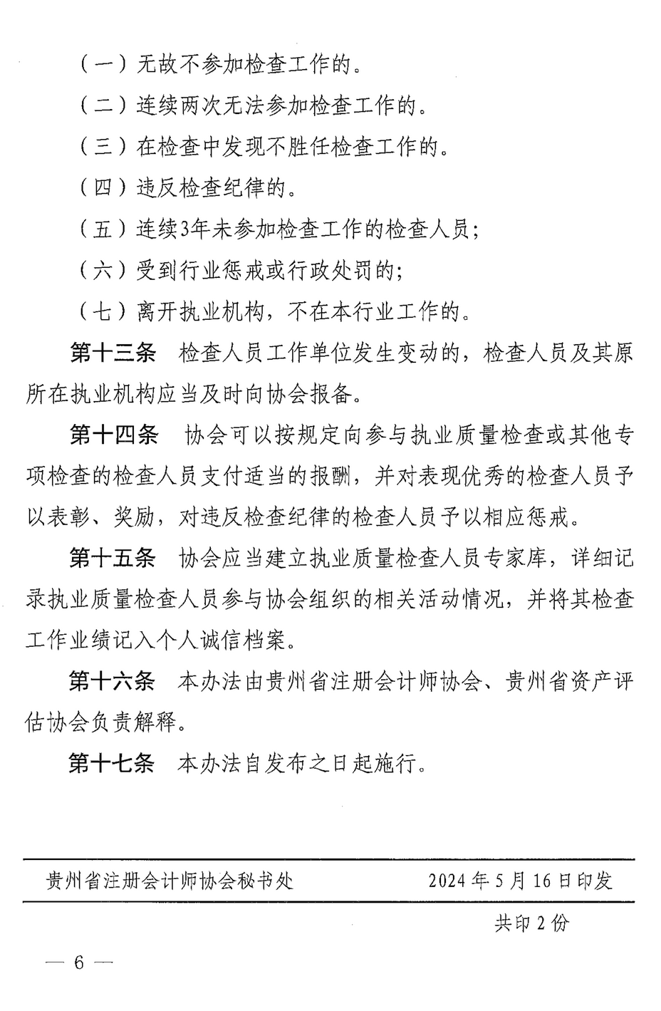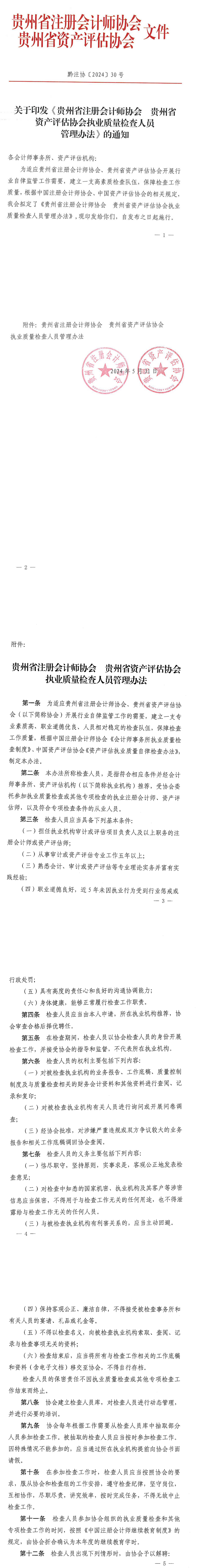 贵州省注册会计师协会贵州省资产评估协会关于印发《贵州省注册会计师协会贵州省资产评估协会执业质量检查人员管理办法》的通知