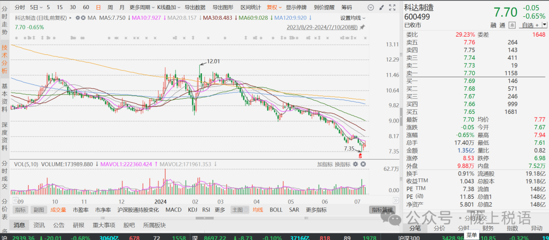 同日晚间,科达制造(股票代码:600499.SH)在《2024年半年度业绩预告》中称,公司2024年半年度实现归属于上市公司股东的净利润预计为38,000万元到58,000万元,同比下降52.06%到68.59%。
