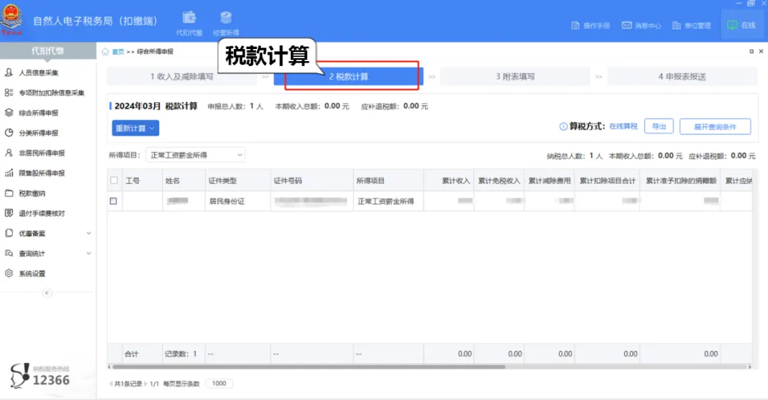 (4)点击【税款计算】,系统会自动对填写的数据进行计税。