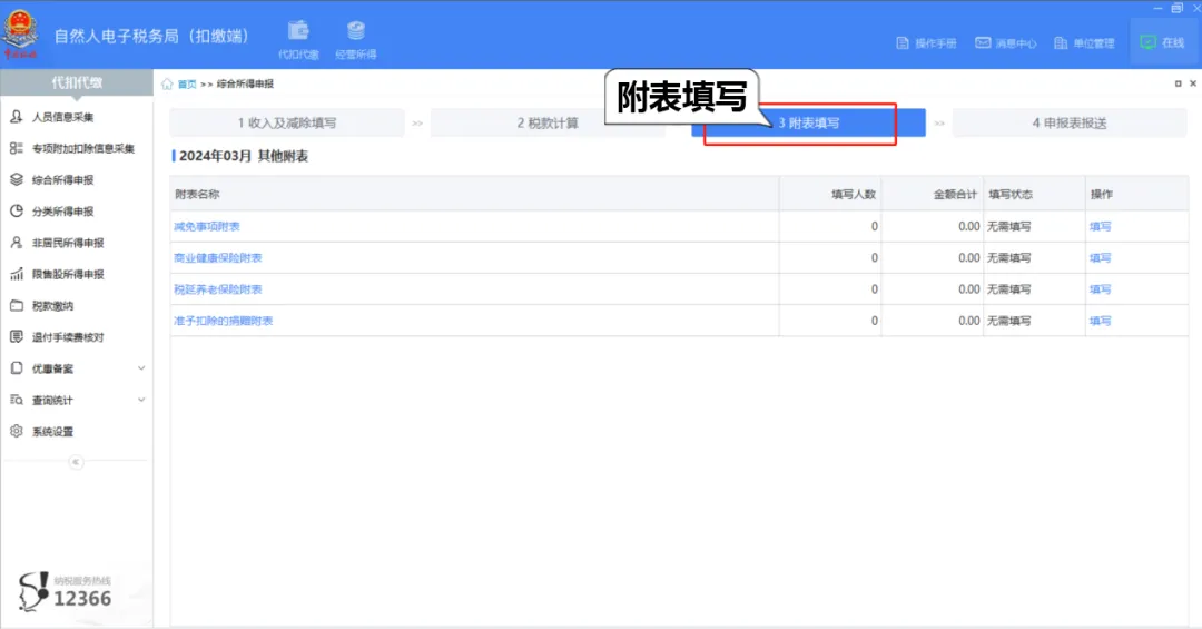 (5)点击【附表填写】,如未涉及到相关附表,则无需填写。