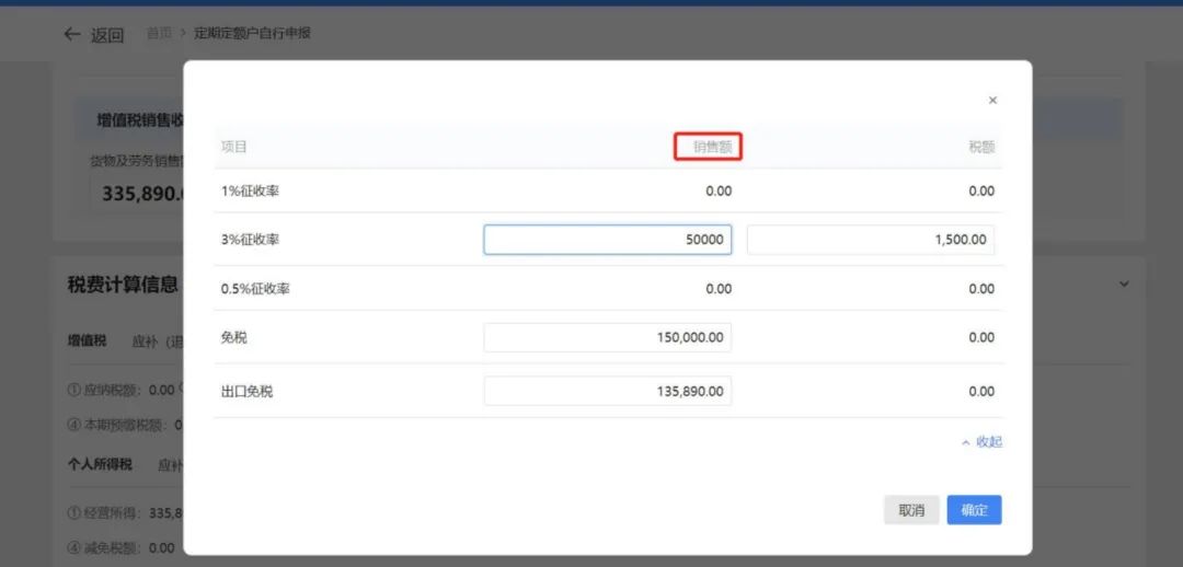 进入功能后,系统根据纳税人核定销售额与实际销售额进行业务判断。