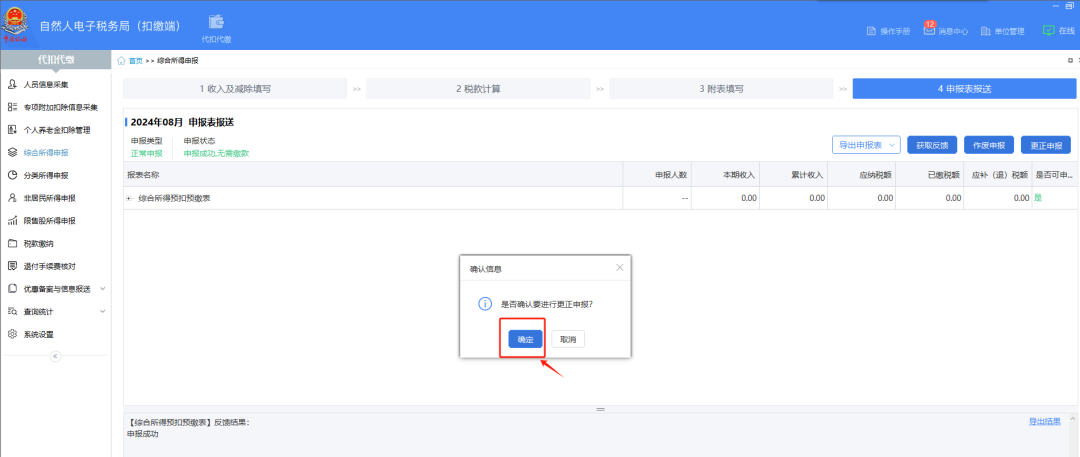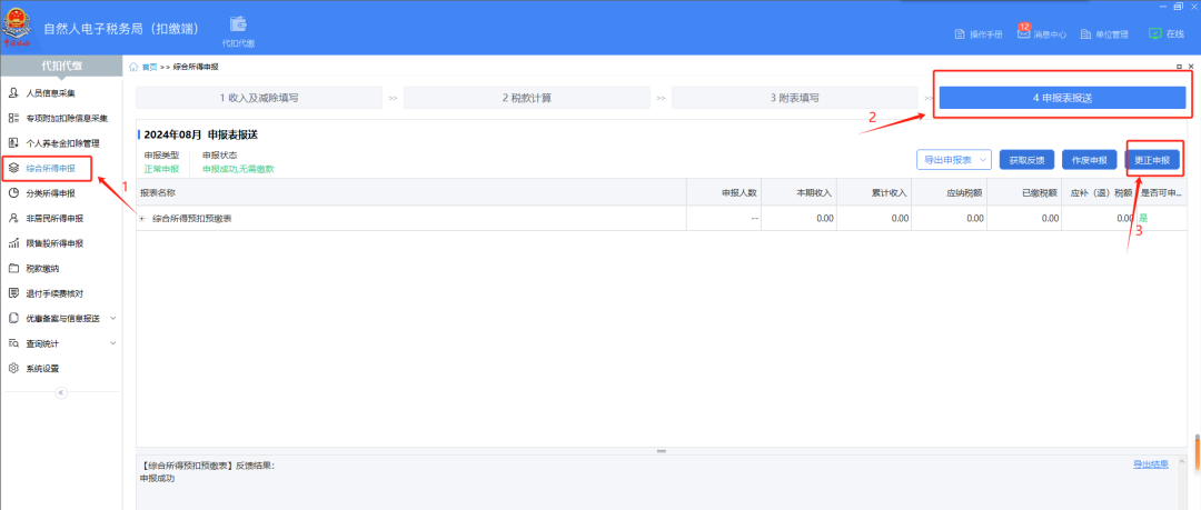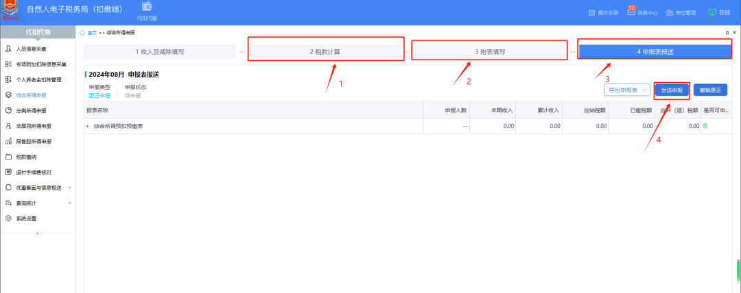 二.按顺序依次点击进入:“综合所得申报”—“申报表报送”—“更正申报”。