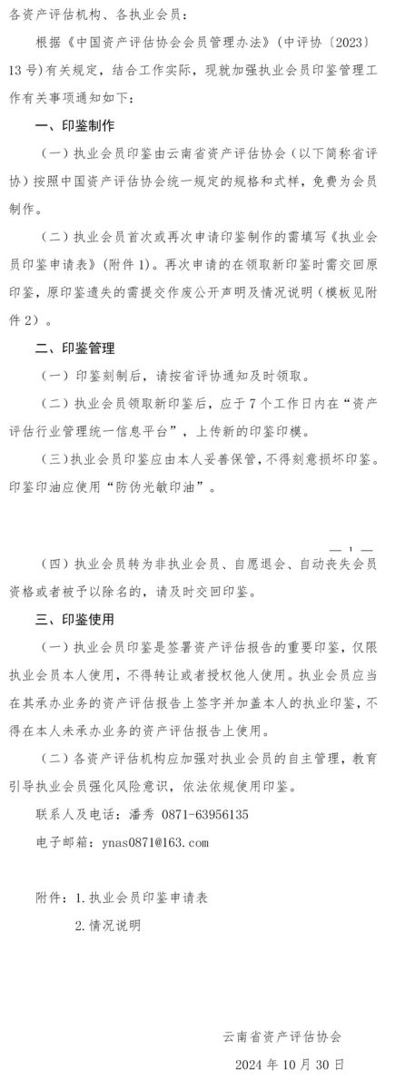 云南省资产评估协会关于加强执业会员印鉴管理工作的通知.pdf