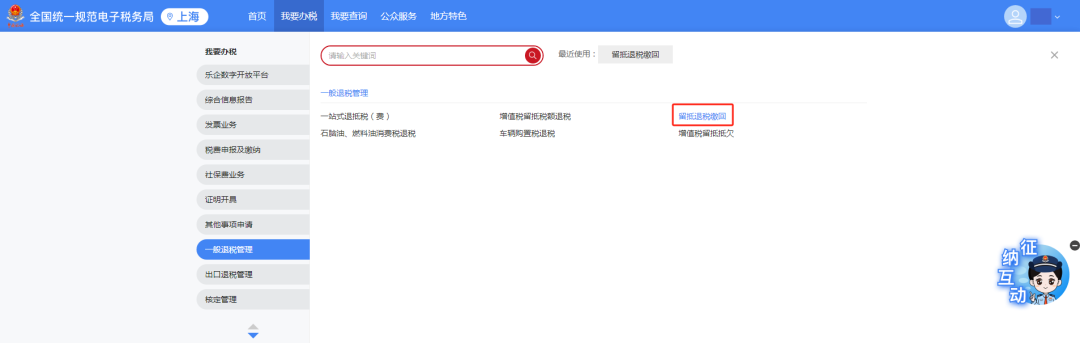 登录新电子税局,点击【我要办税】-【一般退税管理】-【留抵退税缴回】功能菜单进入功能。