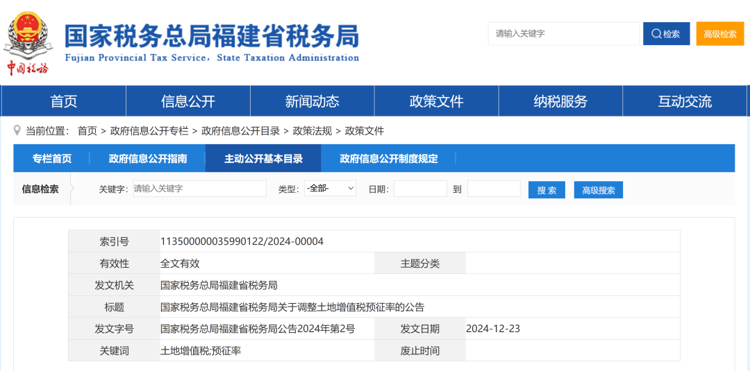 关于《国家税务总局福建省税务局关于调整土地增值税预征率的公告》的解读