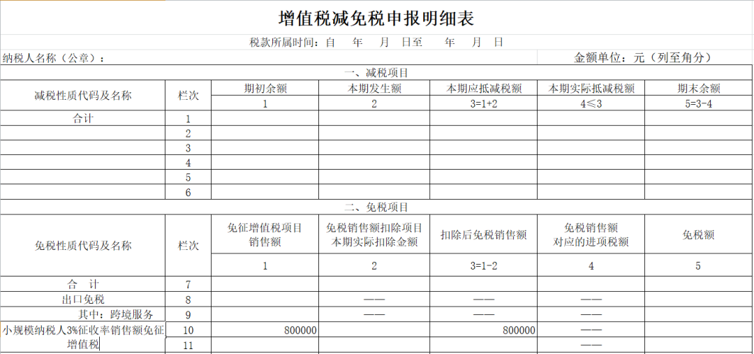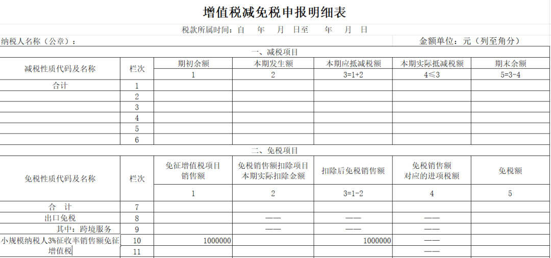 合计月销售额超过15万元的(季度45万),免征增值税的全部销售额等项目应当填写在《增值税及附加税费申报表(小规模纳税人适用)》“其他免税销售额”栏次及《增值税减免税申报明细表》对应栏次。