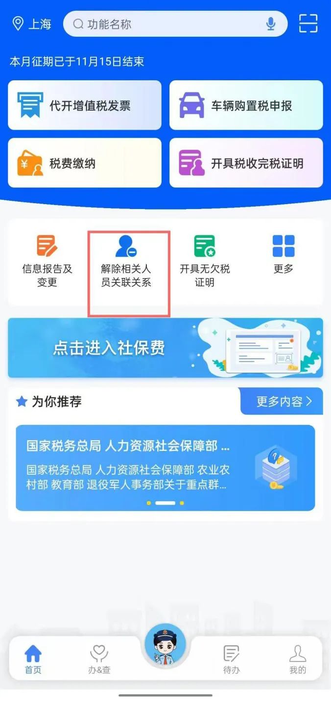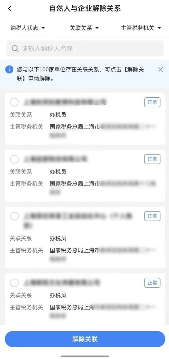 您先别着急,这种情况可以通过手机端电子税务局App申请解除关联关系,操作很简单,我来教您~