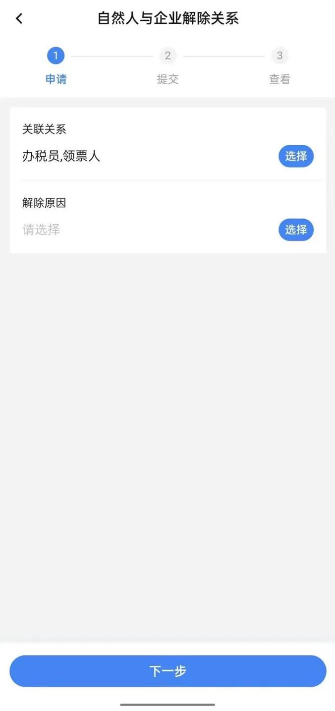 选择您需要解除的关系类型,并根据实际情况选择解除原因。