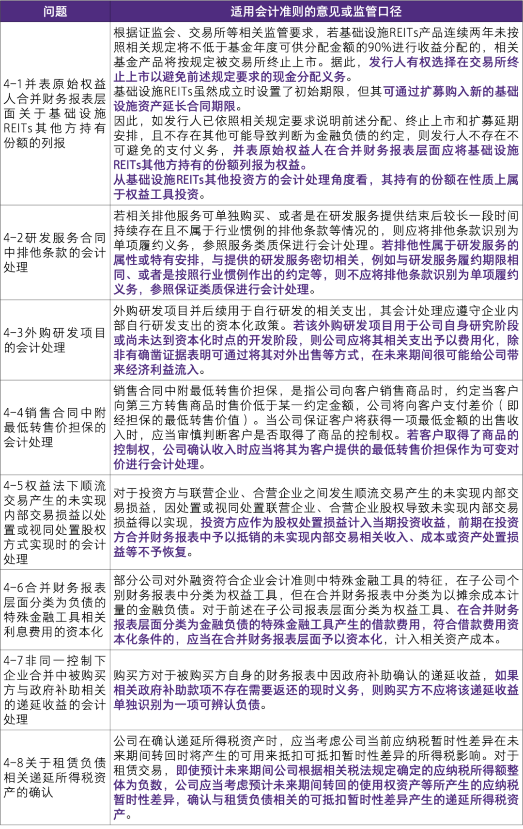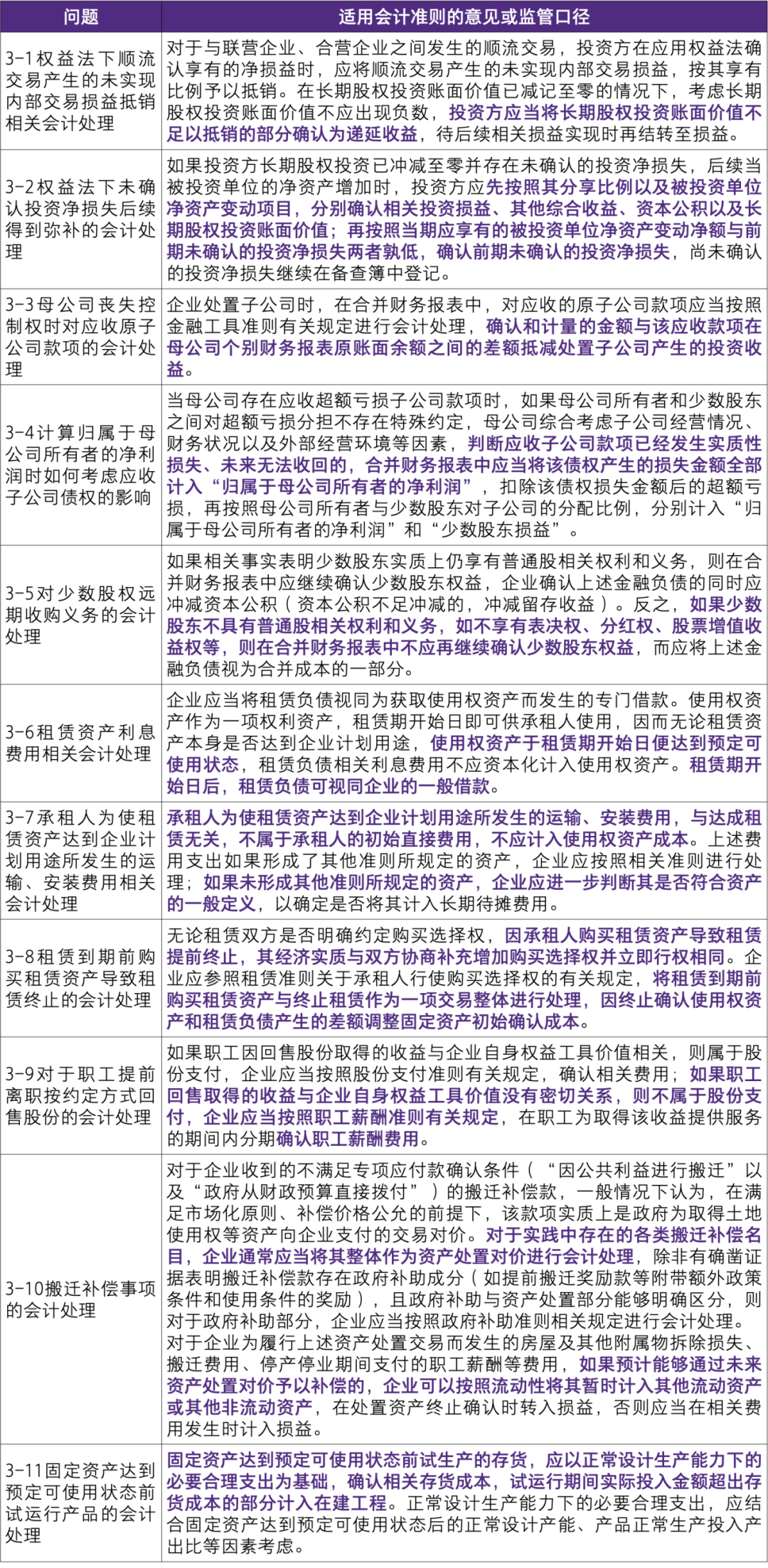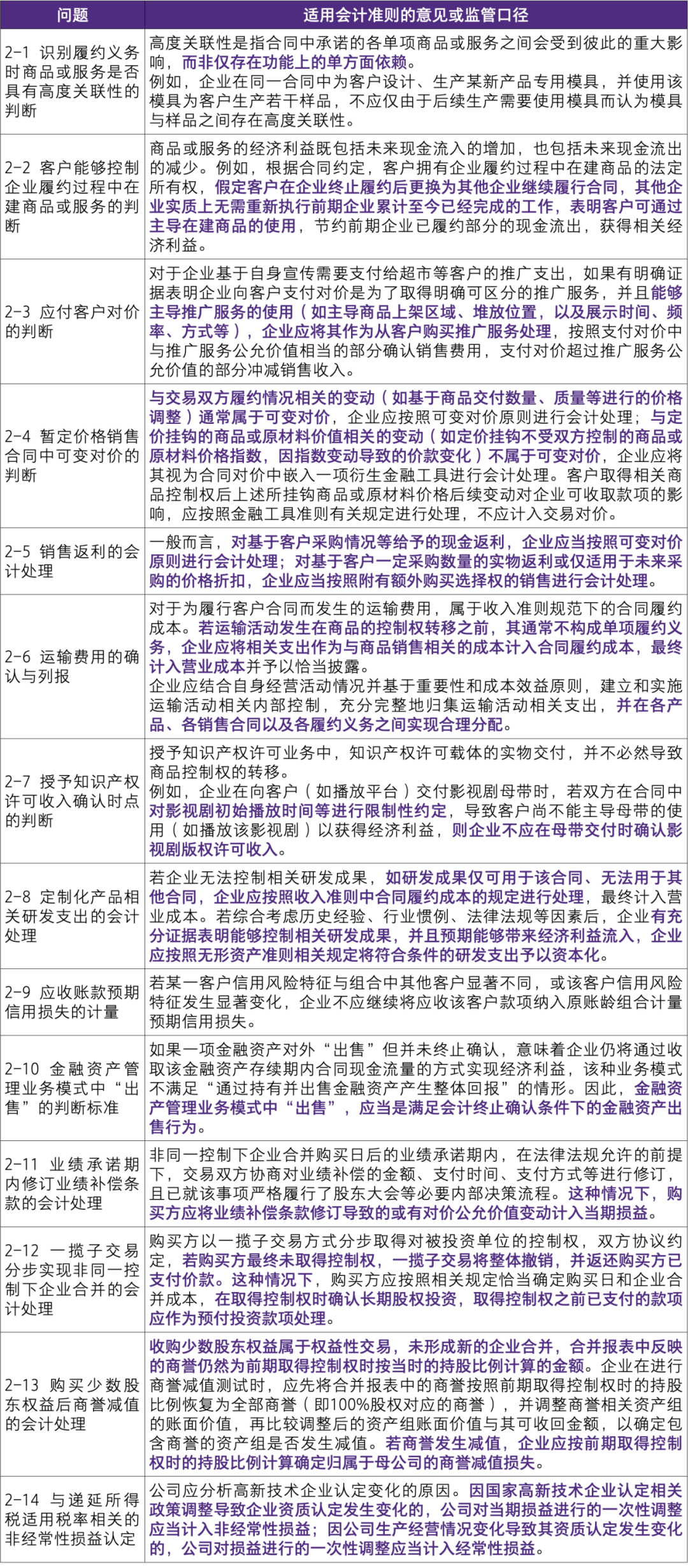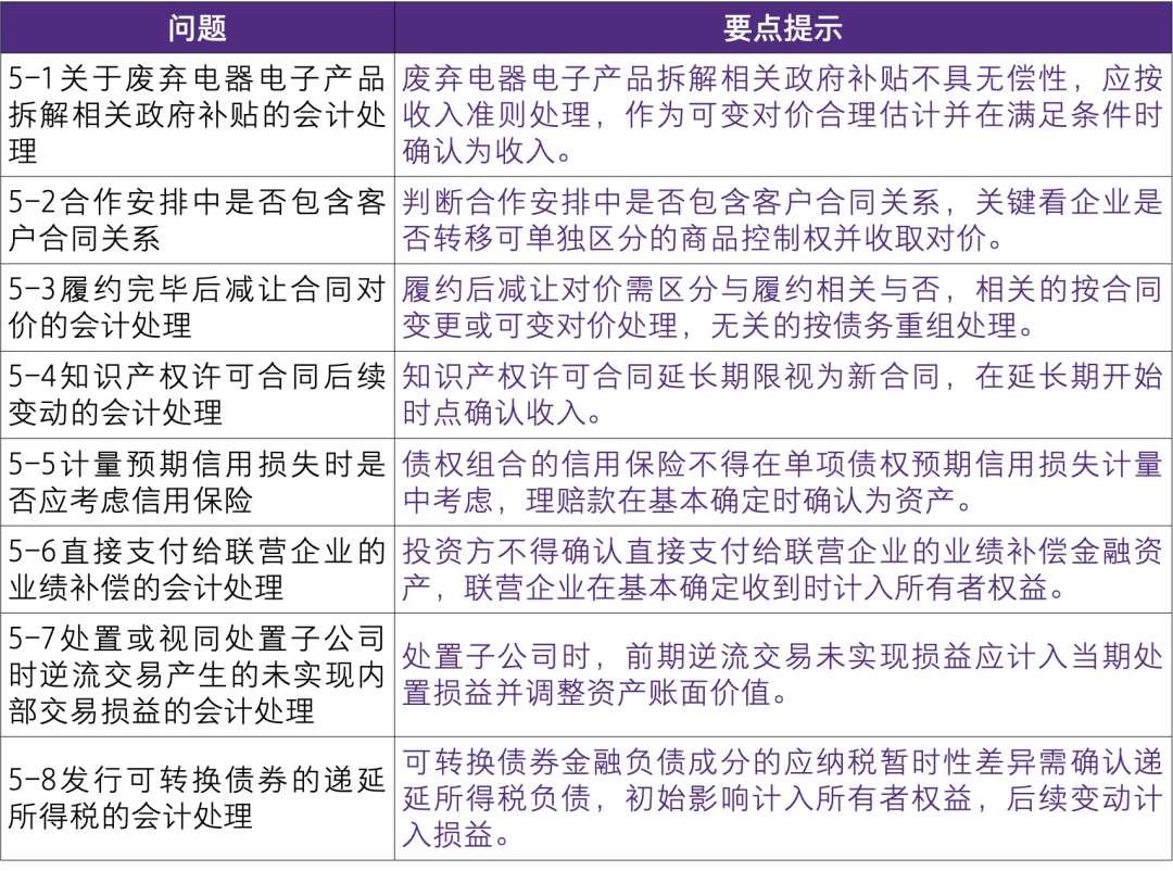 自2020年11月以来,证监会已发布监管规则适用指引会计类1号至5号,累计涉及具体问题94个,具体如下表所示: