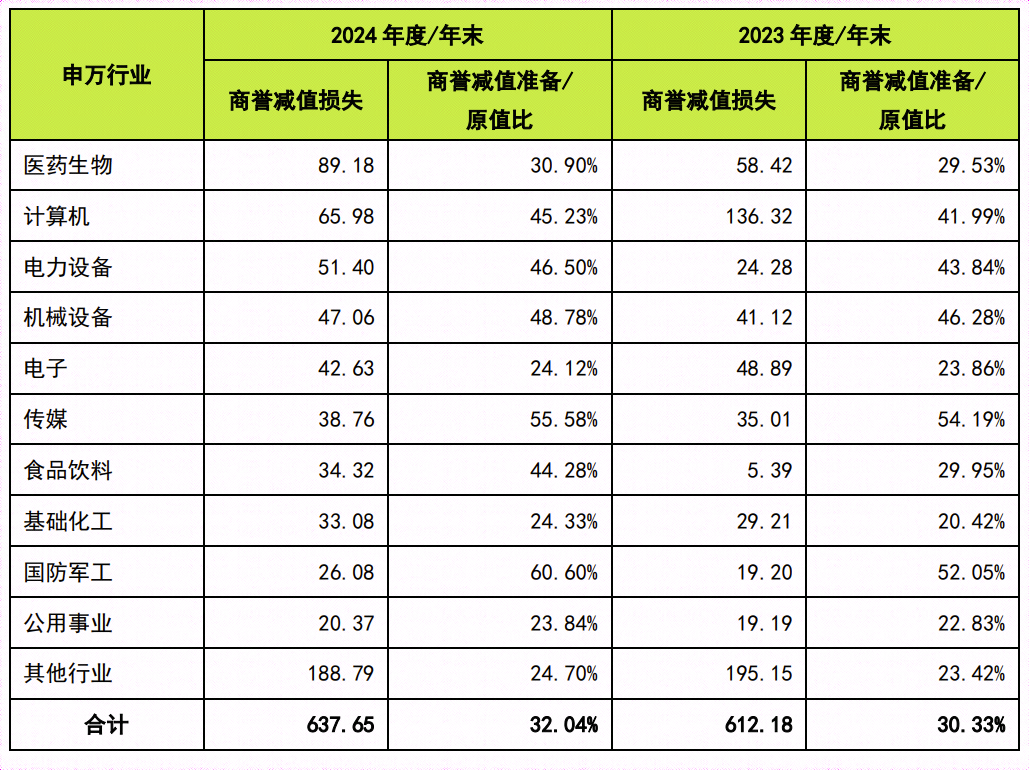 注:商誉减值准备/原值比=行业商誉减值准备/行业商誉账面原值