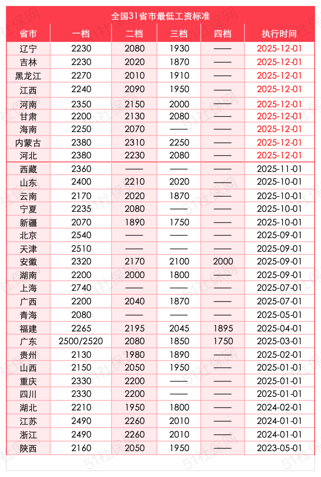 截至12月10日,全国共有9地宣布上调最低工资标准:
