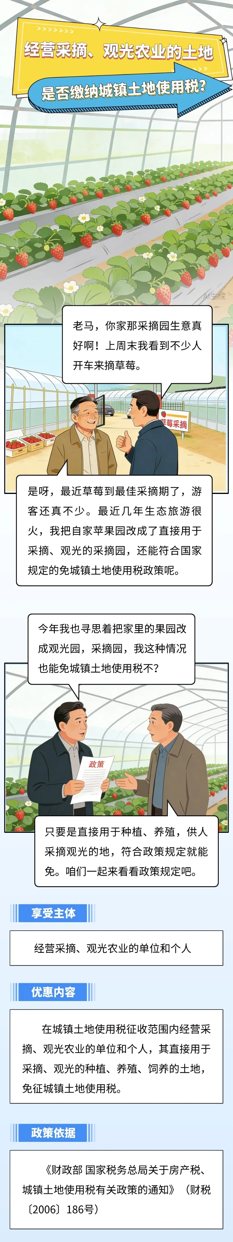 经营采摘、观光农业的土地是否缴纳城镇土地使用税?