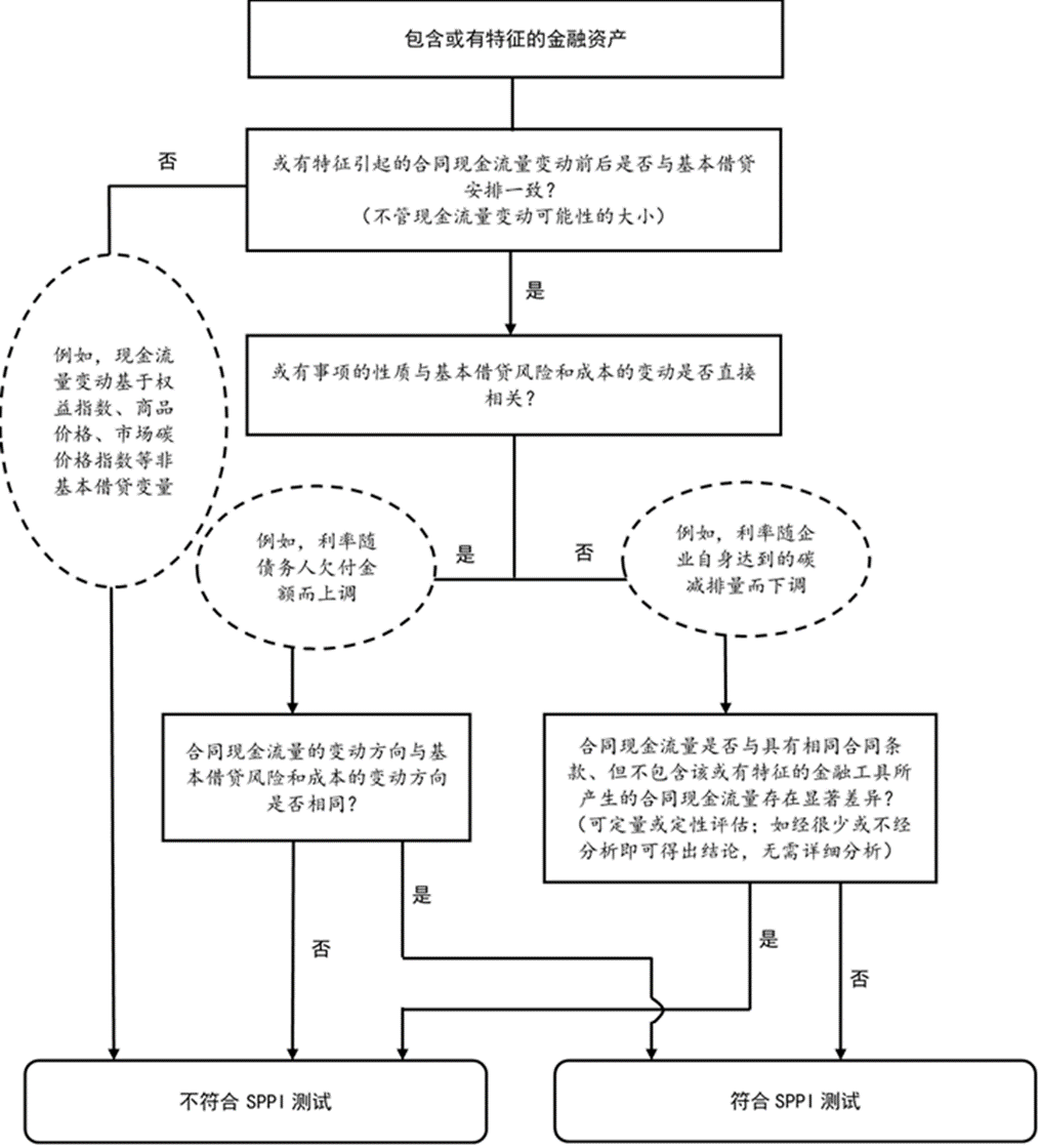 2014年7月,理事会发布《国际财务报告准则第9号》完整版。在制定《国际财务报告准则第9号》时,理事会得出结论,只有当这些现金流量仅为对本金及未偿付本金金额之利息的支付(SPPI)时,摊余成本才能提供有关金融资产未来现金流量的金额、时间和不确定性的有用信息。《国际财务报告准则第9号》也提供了评估金融资产合同现金流量是否仅为对本金及未偿付本金金额之利息的支付的相关指引。