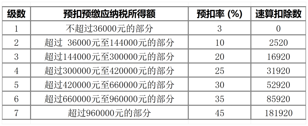 3、综合所得税率表(个税汇算清缴时适用)