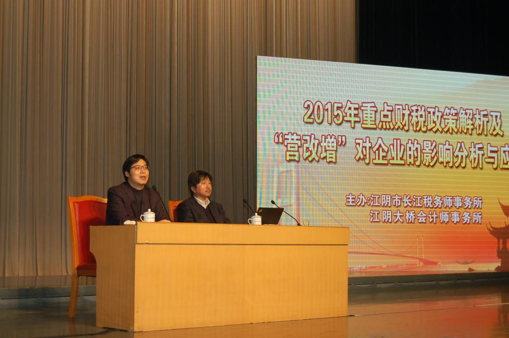 为让客户财务人员及时了解、掌握、运用新出台财税政策、法规,更好的应对财税新政对企业的影响,做好相关事项的税收筹划,控制和防范税务风险,本所于2015年12月23日在江阴大剧院组织举办了主题为《2015年重点财税政策解读》及《营改增未来改革预期及其影响分析》专题讲座,本次讲座特邀请联盟董事长高允斌先生主讲,近1000名客户财务人员、税务人员参加了本次培训,享用了年末这场财税饕餮大餐。