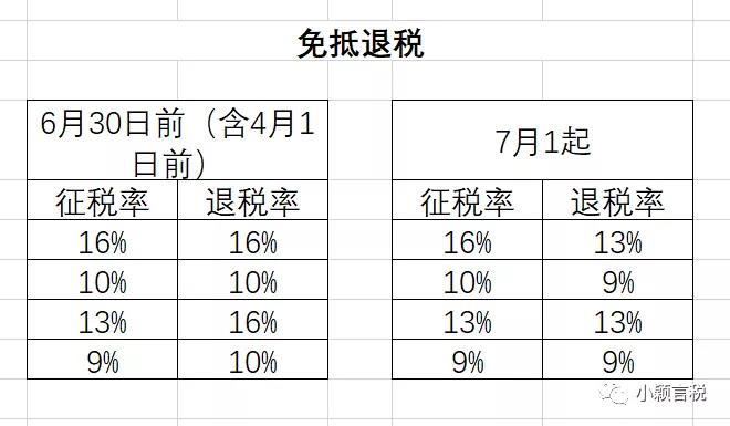 根据今年的深化增值税改革方案,自41日起(指货物服务的出口时间,并非国内采购取得专用发票的开具时间),增值税税率16%的下调为13%10%的下调为9%。配合增值税税率调整,自今年41日起,原征税率和退税率均为16%的出口货物服务,退税率调整为13%;原征税率和退税率均为10%的出口货物服务,退税率调整为9%
