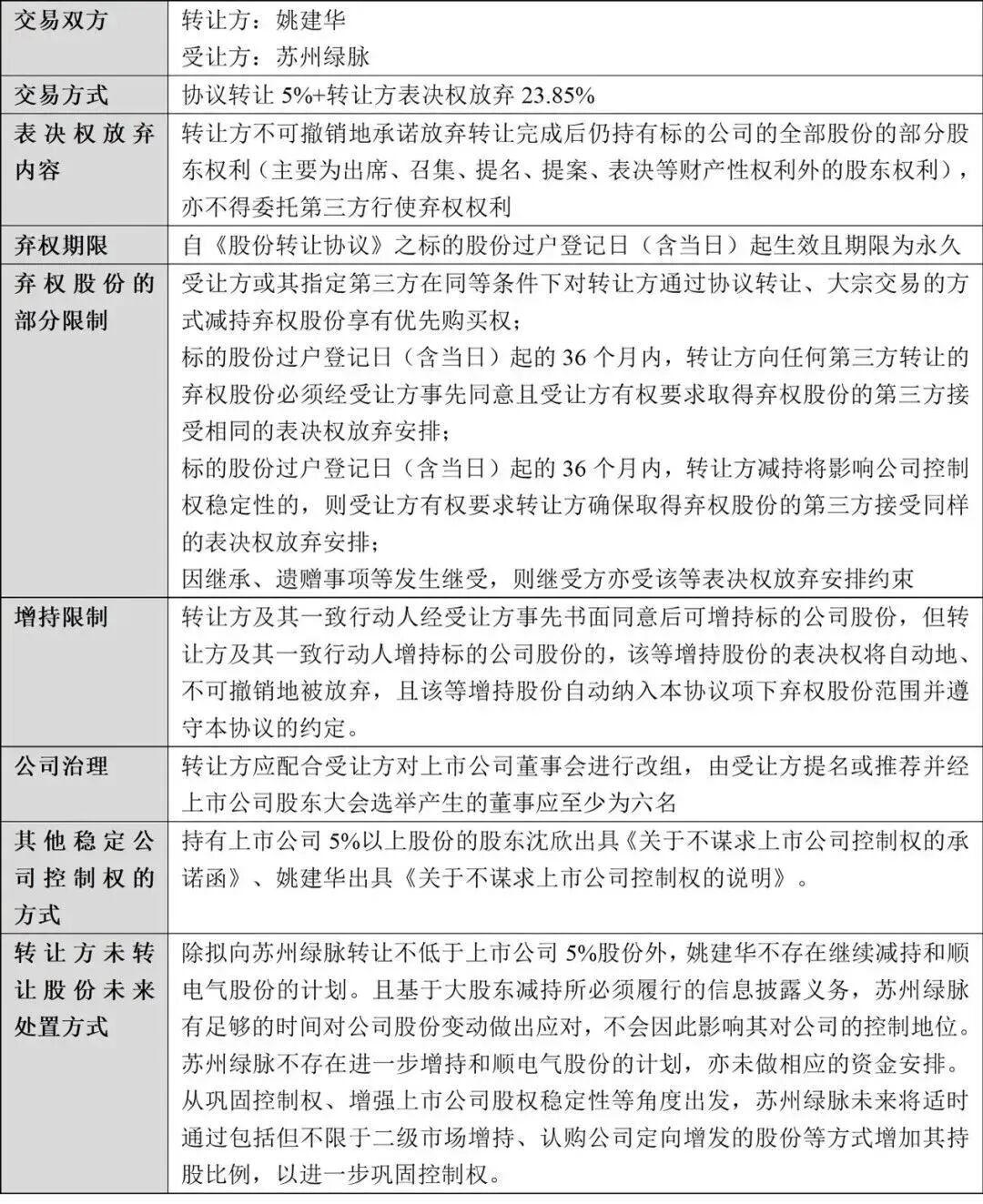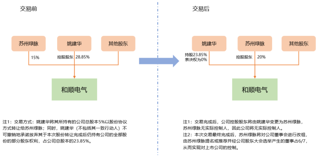 (1)苏州绿脉收购和顺电气/300141(表决权放弃+协议受让+董事会控制)