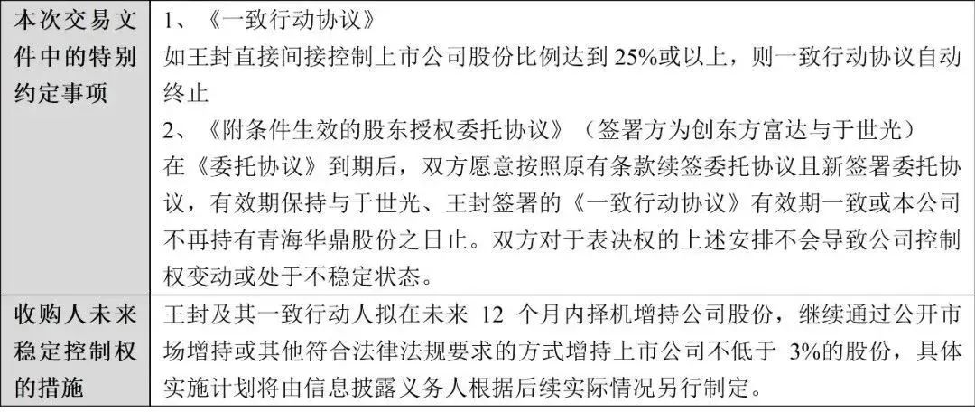 (1)青海华鼎(增资取得上市公司股东的控制权+一致行动协议)