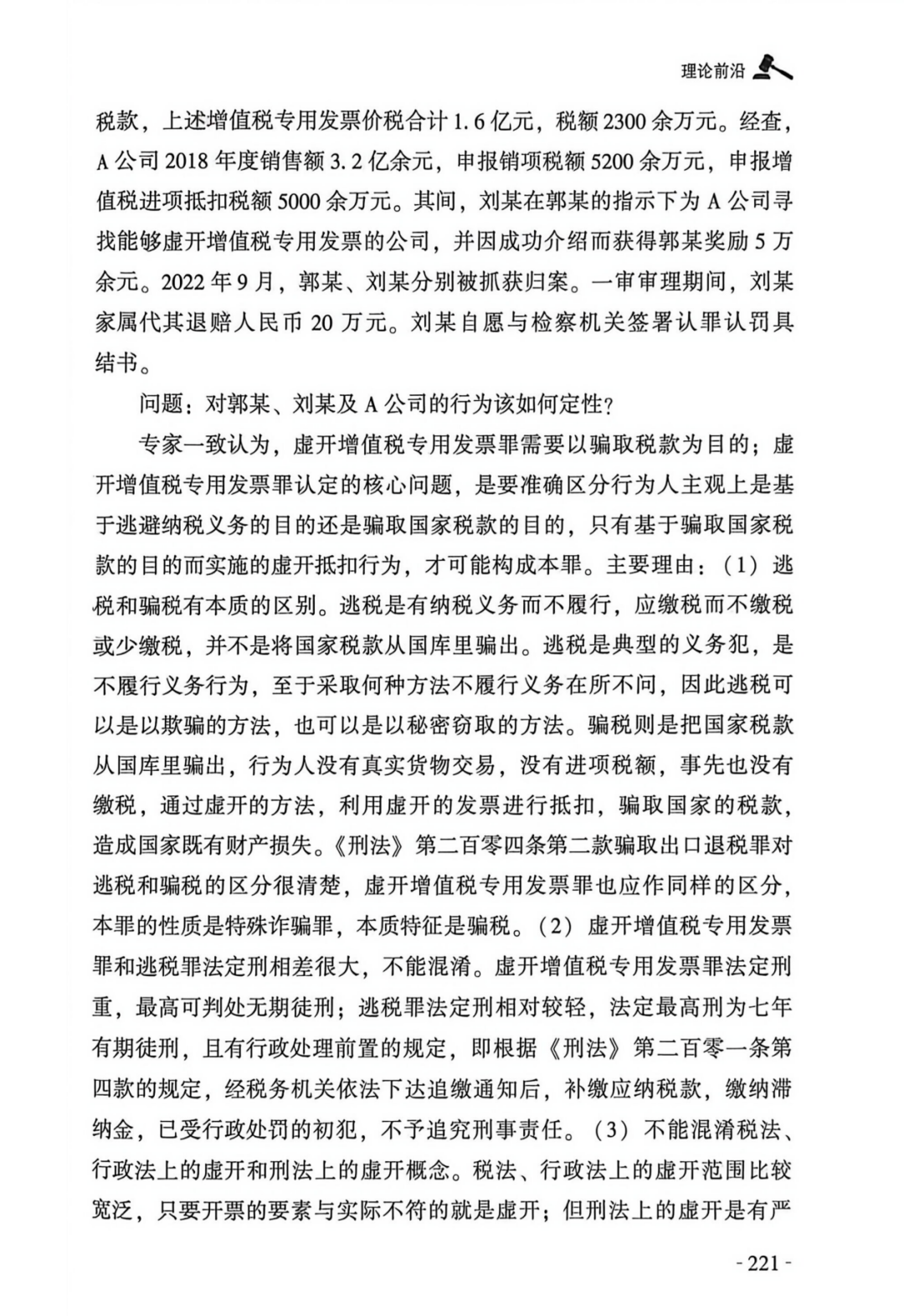 《刑事审判参考》:关于虚开增值税专用发票罪法律适用问题专家论证会会议纪要